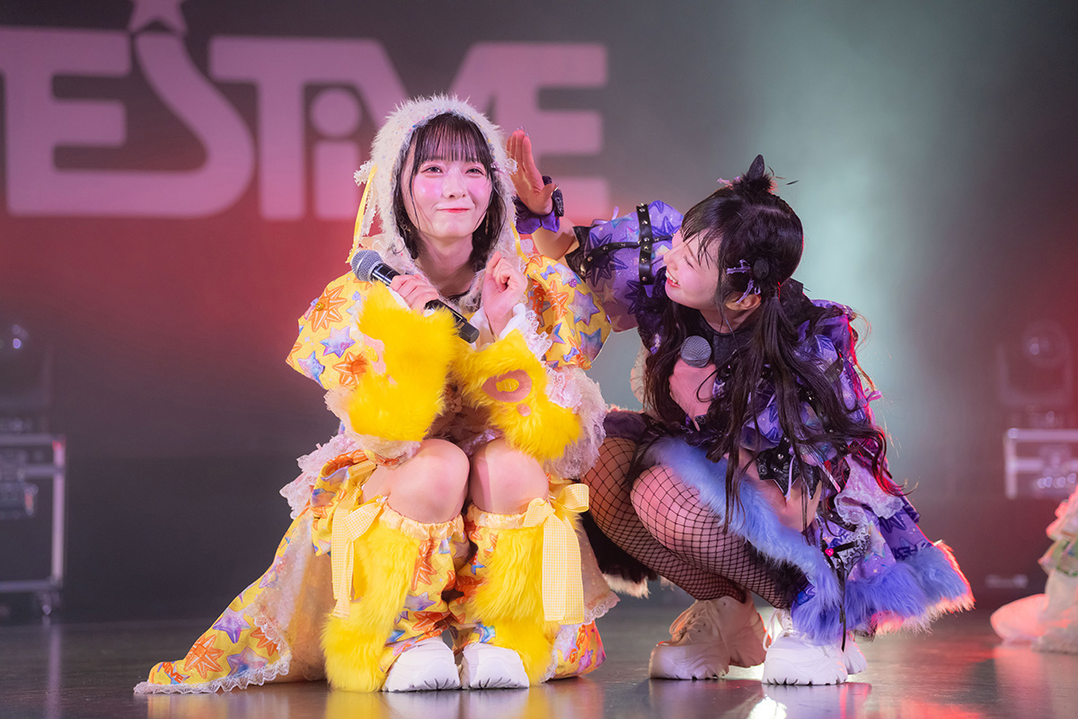 続いて登場した新体制FES☆TIVEは人気曲「革命的オーバードーズ」で一気に会場の熱量を引き上げ、「カンフーミラクル〜愛〜」「しゃかりきトップランナー!」と立て続けにキラーチューンを投下。妹グループに負けない圧倒的な盛り上がりと存在感を放った。