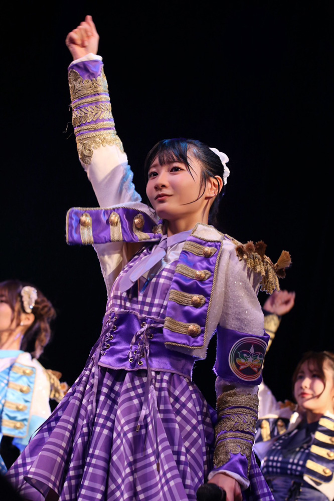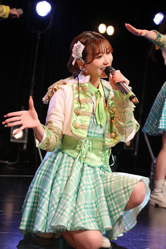 また、自己紹介ソングである『恋してYES~これが私のアイドル道~』ではカードで抽選して当てたメンバーからスタートするという、スペシャルバージョン。柏綾菜が見事引き当て今夜限りのナンバーとなった。もちろん宮崎の懐かしい自己紹介には、会場は大歓喜!ひときわ声援を送り盛り上がった。