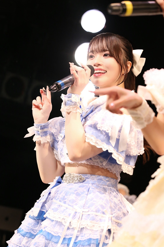 さらに「意気込み!」というとこで、宮崎直々に河村果歩を指名。「盛り上げ役!わたしが暴走機関車だから、ぜひ引き継いでほしい」という宮崎の思いに応え、河村が精一杯の大きな声コールアンドレスポンスで盛り上げた。”夏メドレー”とし、上着を脱いで『可愛いだけじゃいられない』『常夏ハイタッチ』『ナツカレ★バケーション』『WELCOME☆夏空ピース!!!!!』『プリプリ♥SUMMERキッス』『ときめき色の風とキミ』を立て続けにパフォーマンス。続いて『純情シンデレラ』では宮崎が坂林佳奈、櫻井陽夏と共に登場。途中「わたし、こんな可愛い格好してもいいですかー?!」という宮崎に、会場は「いいよー!」と答え、3人が寄り添うというなんともキュートなステージ。『1,000,000☆スマイル』までを終え、宮崎が「本当にここまでみんなよく頑張りました!」とメンバーを称え、「みんなの満足そうな表情をみて嬉しいです!ついてきてますかー?!」と会場に呼びかけると大きな歓声が上がり、「これこれこれ!帰ってきた感じがします!」と宮崎も満足そうな笑顔を光らせた。