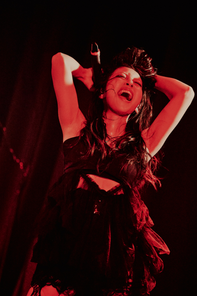 事前に“重大発表あり”と告知されていたことも相まって、代官山UNITは期待と緊張が入り混じった特別な空気に包まれていた。この日の公演は、ゲストとして招かれたファントムシータのライブで幕を開けた。ステージに登場したファントムシータは、唯一無二の幻想性と狂気を帯びたライブパフォーマンスで観客を圧倒。