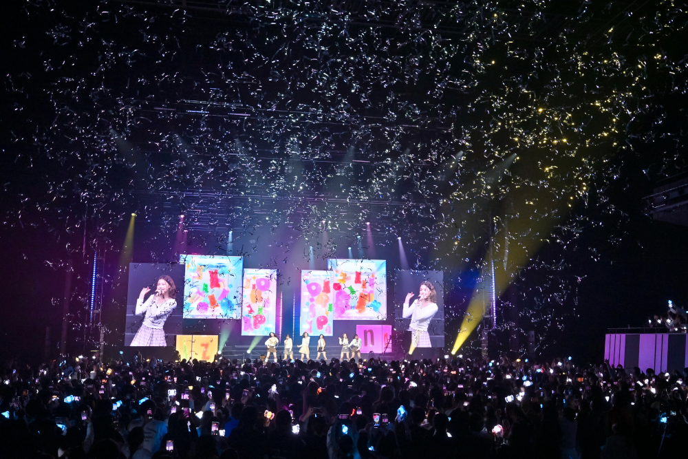 そしてここからは再びライブパートへ。「TIMEBOMB」では「naya大好き!」とMAI が投げキッスする一幕もあり、明るくはつらつとしたiznaの魅力を存分に発揮した。続く「BEEP (Japan Edition)」ではさらにテンションアップし、跳ねるようなステップと弾ける笑顔がチャーミング。