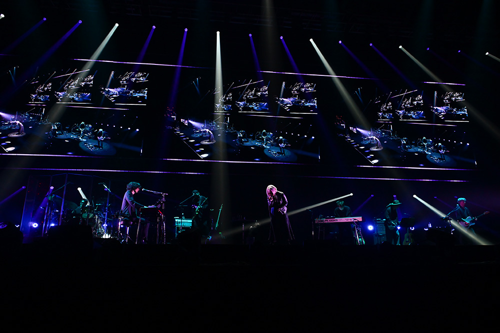 「魂の色は何色ですか」のフレーズも印象的なサビでは客席は無数のペンライトに照らされ、一気に熱が上がる。そこから一転、2曲目には静寂の中、ピアノのイントロから始まる TV アニメ「シャングリラ・フロンティア」エンディングテーマ『ガジュマル~Heaven in the Rain~』が歌い上げられた。