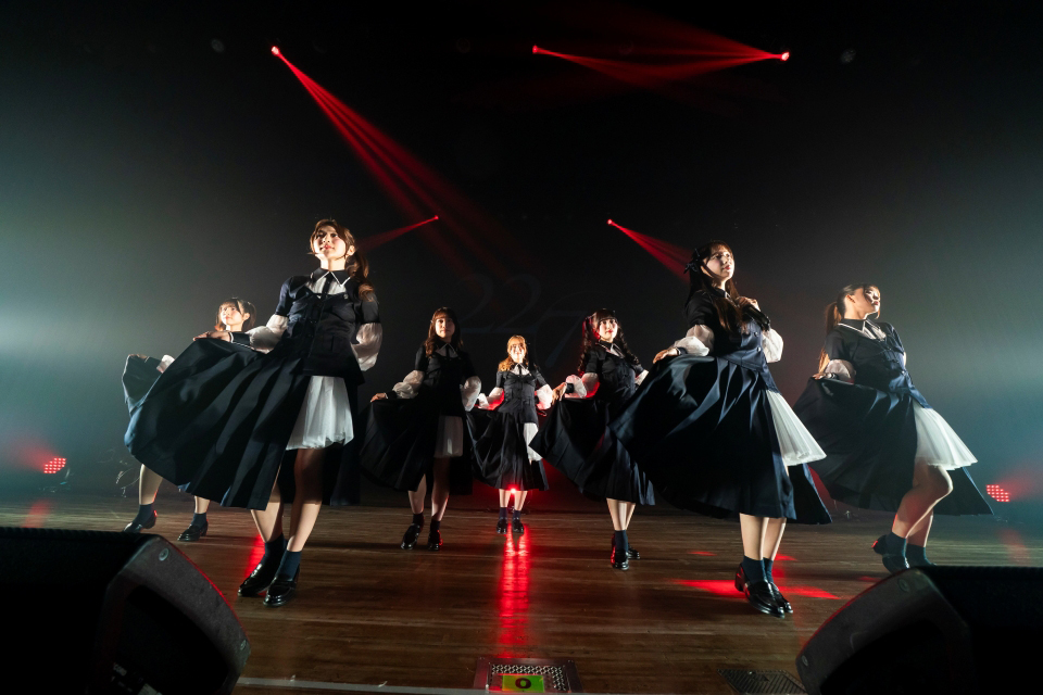 気づけばメンバーたちは、最新衣装に着替えていた。椎名が「騎士団っぽい」と言うのも納得のノーブルな衣装で、4月22日発売の16thシングル『二つの道』を披露。幻想的な音色に乗せて伝承の絵画のような神々しささえ感じられるめくるめくダンスに、冒険の物語がありありと浮かぶパフォーマンスで、ここにさらに3期生8人が加わったときの壮大さを思うと22/7新章の幕開けに期待を禁じ得ない。