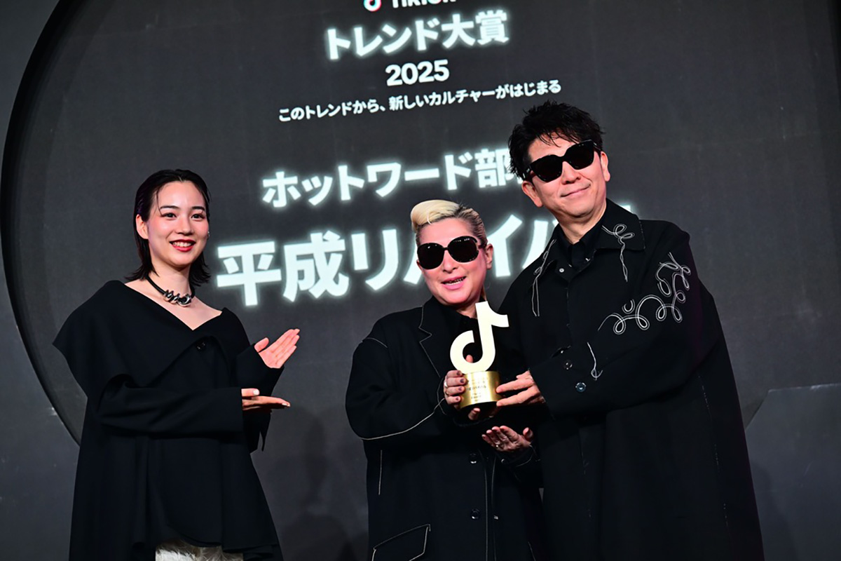 TikTok発のキーワードやカルチャー現象を表彰するホットワード部門賞は、2000年代カルチャーの再注目を象徴するキーワード「平成リバイバル / come again」が受賞。「come again」を歌う、m-flo がトロフィーを受け取った。
