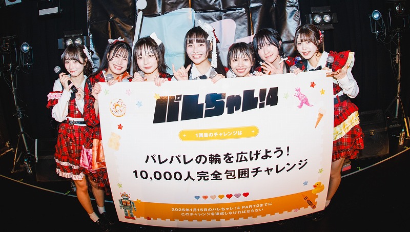 「Palette Paradeがさらなる成長を目指し、さまざまな試練に挑む全力のチャレンジ企画」として、毎年行っている「パレちゃレ!」。4年目となる今年も開催が決定。今回はSpotify O-Crestを舞台に、12月12日・1月15日・2月12日の3回に渡って実施。それぞれのチャレンジを見事クリアすると、2025年某日開催予定のパレちゃレ!4 FINALにて、重大な発表が行われる。ここでは、12月12日に行われた「パレちゃレ!4」PART1の模様をお伝えします。
