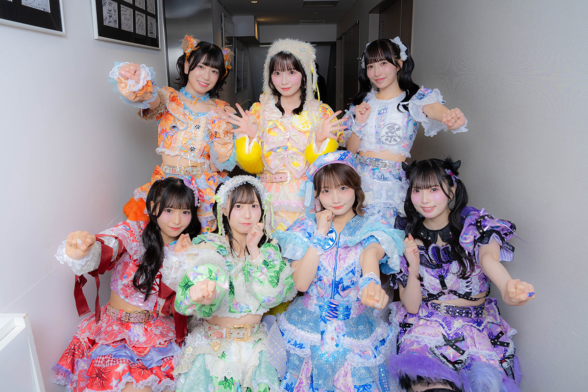 新メンバー2名はすでにグループに自然と溶け込み、既存メンバー5人も確かな成長も感じさせるステージに。長年培ってきた経験に裏打ちされたパフォーマンスや継承され続けている魂から感じるのはまさにグループの“貫禄”と呼ぶにふさわしいものだった。後半では「ゴートゥーフェス☆」「OIDEMASE!! ~極楽~」 「沼落ちスパーリング」など多彩な楽曲で魅せ、終盤の「コズミック祭大革命」 「マジカルパレード」では一体感が最高潮に達した。