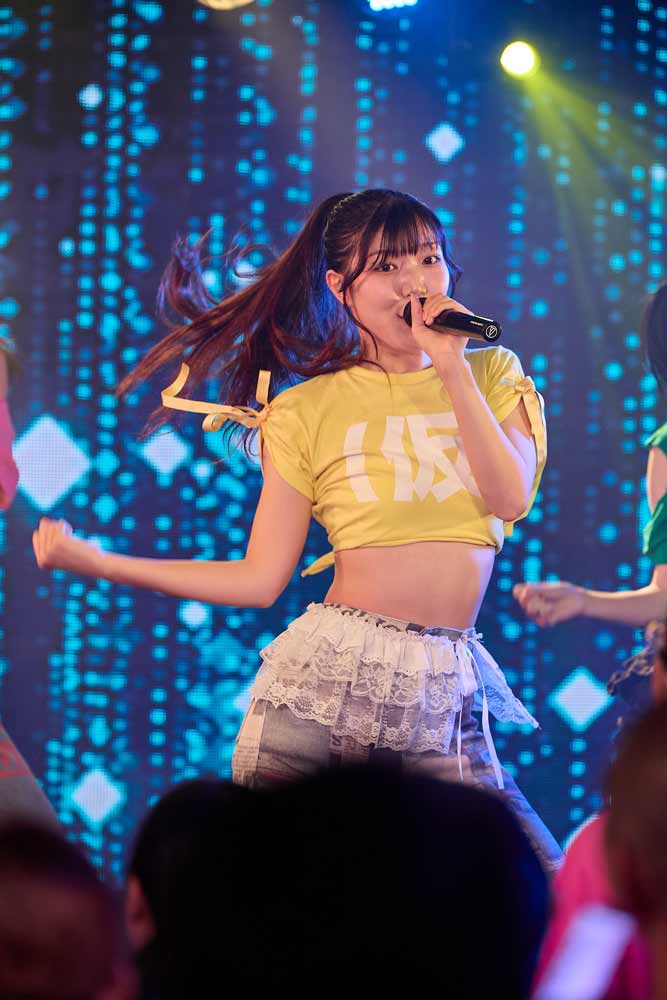 自己紹介を終えたあと、アプガ(仮)は「アップアップタイフーン」で観客とともにタオル回しを敢行。「バレバレ I LOVE YOU」でかわいいステージ、「BIG BANG」ではかっこいい姿を見せる。さらには「虹色モザイク」でキラキラの空間を作り上げた。