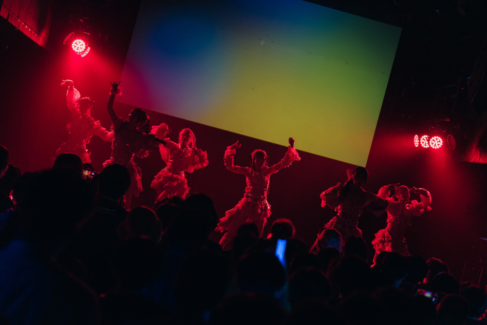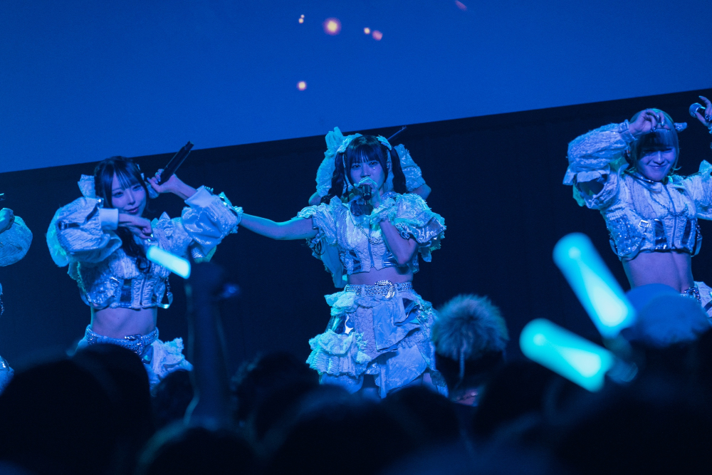 ”可愛いブロック”では「ココロマリアージュ」「Chewing Star」など7曲をノンストップで披露し、キュートで可憐な楽曲群にファンは振りコピや掛け声で酔いしれた。ステージ背後のスクリーンでは曲頭に一瞬タイトルを表示し初心者にも優しい演出で盛り上げた。星野まおは「ここのブロックは対バンではまとめて披露することがないから、ワンマンでできて嬉しいです!」と喜び、李縷さきは「みんなにもっとレベルアップした姿を見せて、ツアーを絶対成功させたいと思っています!」と高らかに意気込んでライブは後半戦へ。「イサナ」や「REM」など人気曲を全身に浴びるようにフロアのボルテージは最高潮へと近づいていく。