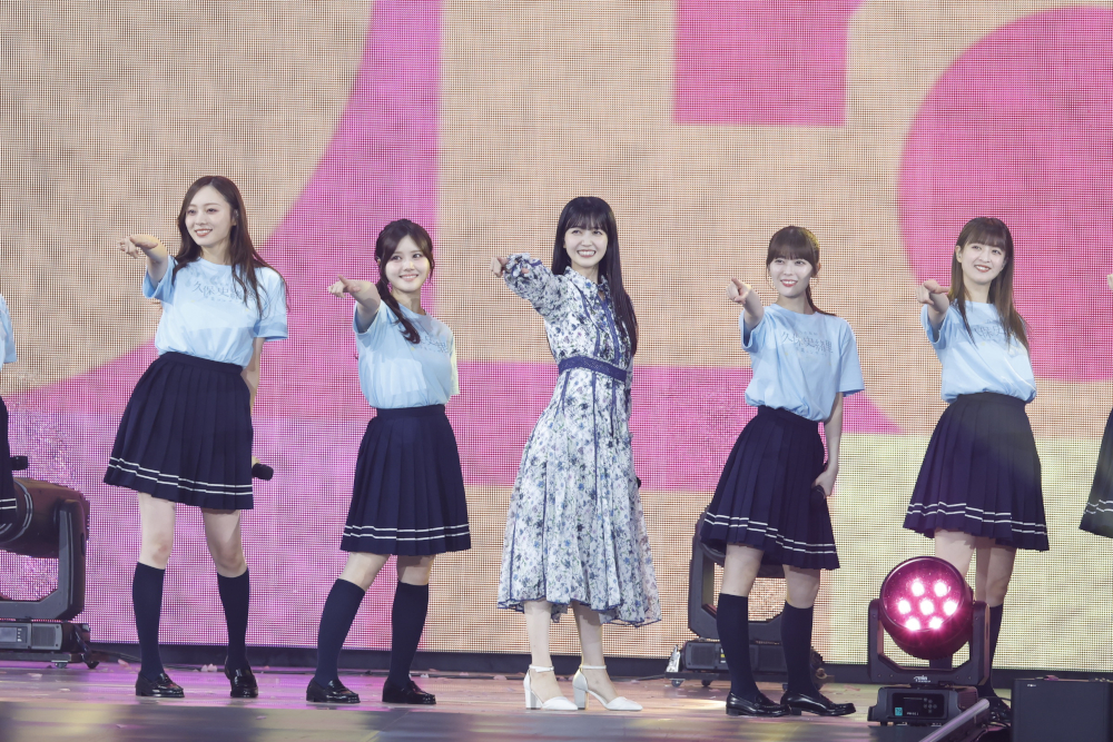 「最後は笑顔で久保を送り出しましょう」という梅澤の言葉に続いては、メンバー全員で「キャラバンは眠らない」「ダンケシェーン」を連発。客席が久保のペンライトカラーである水色+黄色で染まる中、最後は遠藤さくらの「やっぱしーちゃんだな!」で締めくくられた。