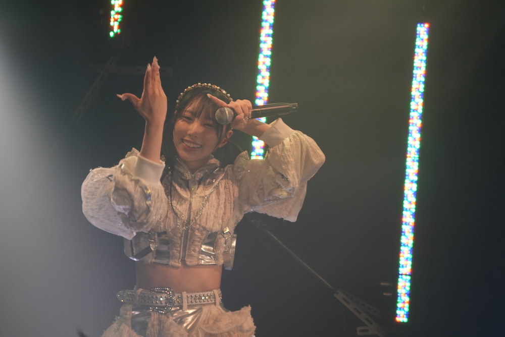 「さきの凱旋公演ということで、この曲です!」と「アツイナイトブルー」でライブ中盤へ。振りコピや一緒に拳を上げる楽曲もあり、色とりどりのペンライトが揺れるなか、メンバーを撮影する人からパフォーマンスをじっくり堪能する人まで思い思いのスタイルで同じ時間を共有していく。