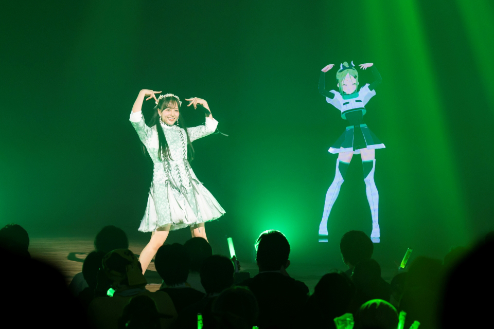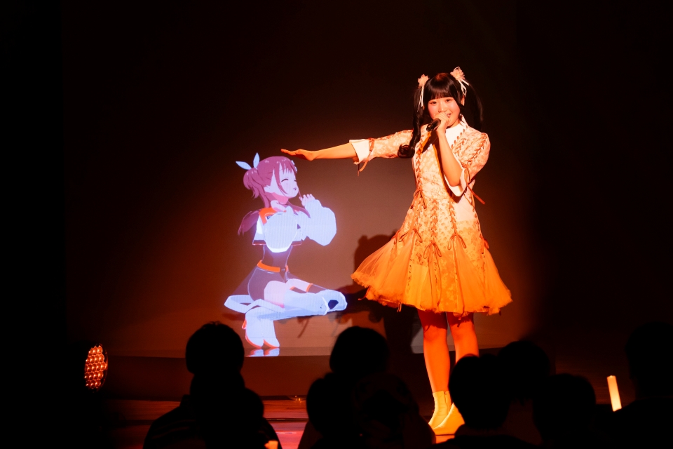 トリを務めるのは、瀬良穂乃花役・望月りのの『ひとくちぶん』。互いの顔を見て頷きあった瞬間、確かに目が合っていることを感じた。優しくも熱くミドルバラードを歌い上げる望月の後ろでキャラクターが踊るという役割分担から伝わってくる、2人のぬくもり。歌詞に合わせ、猫役にした穂乃花の頭を望月がなでる場面にも癒やされた。