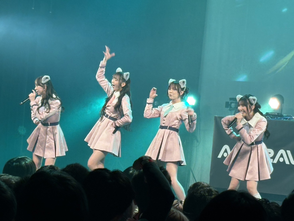 続いて、満を持してi☆Risが登場すると会場のボルテージは一気に上昇。一瞬にしてCLUB CITTA'を彼女たちの色に染め上げていく。1曲目『アルティメット☆MAGIC』で多幸感溢れる空間を作り出すと、「みんな、まだまだ馬鹿騒ぎできるんじゃないのー!」とフロアを煽る。続く『あっぱれ!馬鹿騒ぎ』では、地鳴りのような「わっしょい!」コールが沸き起こり、観客が一体となった狂乱の渦を巻き起こした。アニレヴへは今回がメンバー全員では初参戦。MCでは、「新生活に馴染めなくて、難しいと感じている方もいるかもしれません。私たちの新曲を聴いて、少しでも元気を出してほしいなと思います」と優しく寄り添い、『夢へのヒトカケラ』『Happy New World☆』を披露。新生活への勇気を後押しするような、温かくも力強いメロディを会場の隅々まで届けた。さらに、「私たちの勢いはこんなものじゃないぞと。5月からは14回目の全国ツアーも始まります!」とさらなる躍進を宣言。ラストには、「楽しい時間もあっという間で一度は聴いたことがある楽曲です。皆さん、最後まで盛り上がってください!」と呼びかけ、『Realize!』の曲名が紹介された瞬間、フロアからはこの日一番の歓喜の声が上がり、圧巻のステージを締めくくった。