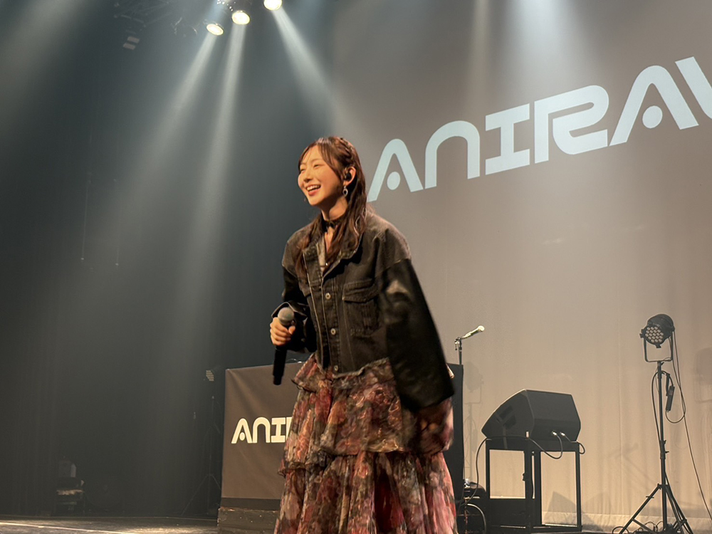 続いて、Aqoursのメンバーとしても活動する斉藤朱夏がステージに登場。「みんなアニレヴ楽しんでる? とっても元気ですね!」とはじける笑顔で呼びかけ、1曲目『バブルポップベイベー』。甘くキュートな歌声を響かせると、サビではフロアから「バブルポップベイベー!」と凄まじいコール&レスポンスが巻き起こり、甘い歌声と力強い歓声が見事なコントラストを描き出した。続く『アタシの機嫌が直るまで』では、斉藤の動きに合わせてフロア中でタオルが激しく回され、会場の温度はさらに上昇。続く『JOY』では「たくさんJOYと言うよ!」と煽り、ハッピーな空気感でCLUB CITTA'を満たしていく。MCでは「アニレヴ楽しんでる? たくさんの大きな声を出してくれてありがとうございます!」とファンへ心からの感謝を伝えた。ここからは新曲を惜しみなく投入。『カンパイっ』では、タイトル通りフロア全員と「カンパイっ!」のコールで盛り上がり、続けて『A・TA・SHI』を披露。新生活への不安を吹き飛ばすような楽曲を立て続けに響かせると、ラストの『Sunshine』まで、太陽のような笑顔とエネルギーでフロアを隅々まで照らし出した。